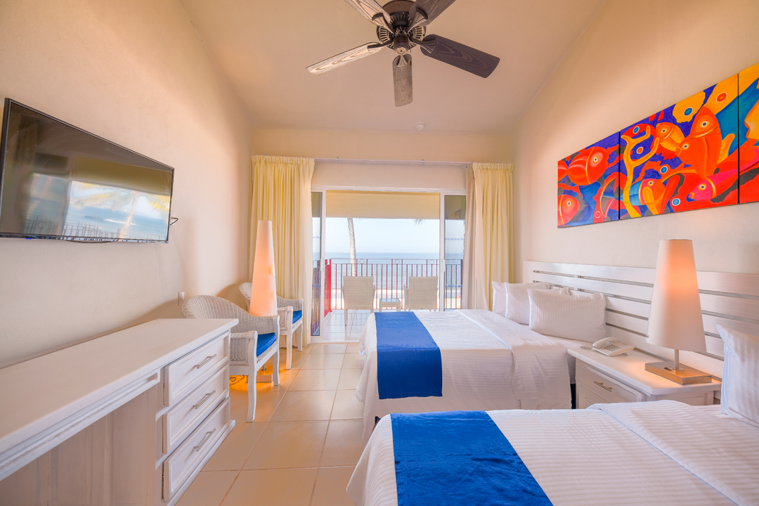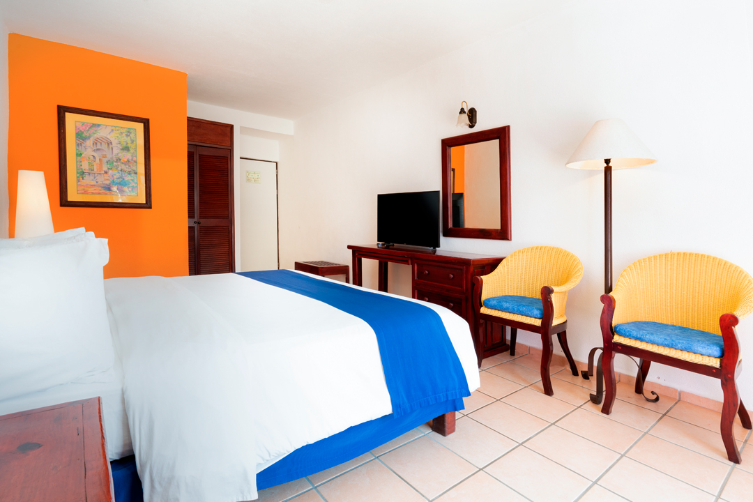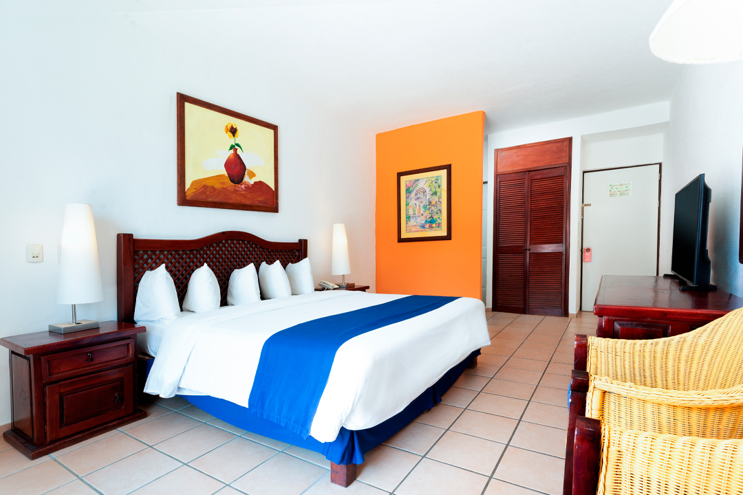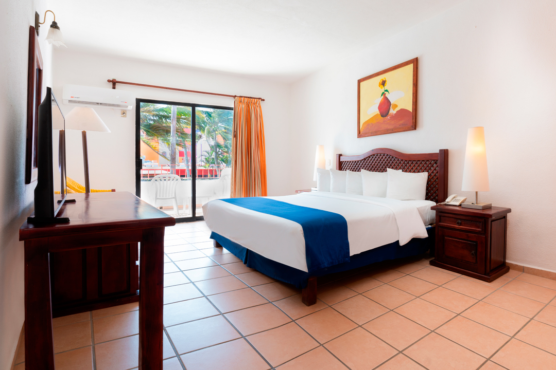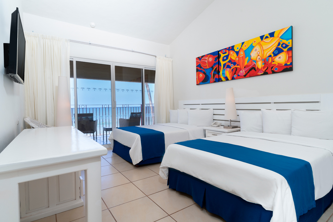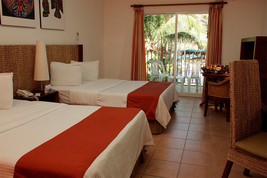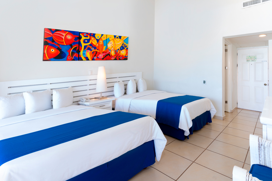 Possui 620 quartos em estilo colonial mexicano com duas camas de casal ou uma cama king-size.