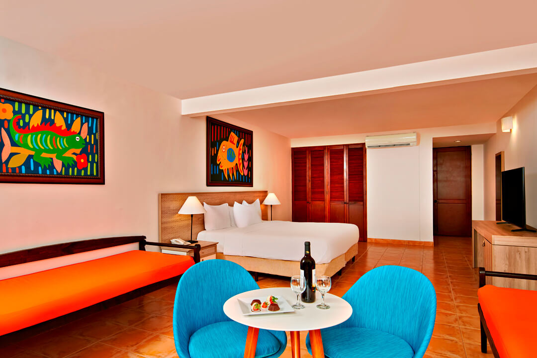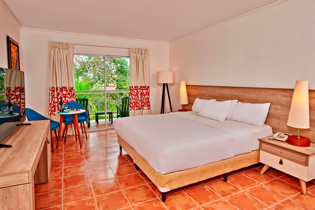Oferecemos um total de 852 quartos em estilo tropical, com varandas individuais, localizados em edifícios baixos implantados em harmonia com o contorno do terreno. O Grand Decameron Panama Hotel oferece dois tipos de quartos: Vista Jardim e Vista Mar.
